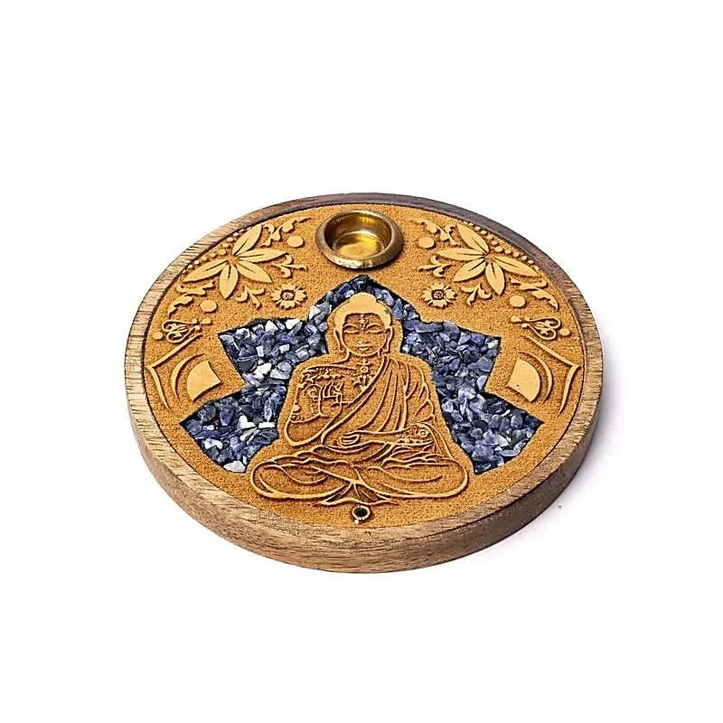 Buddha mit Sodalith - Holzhalter für Räucherstäbchen