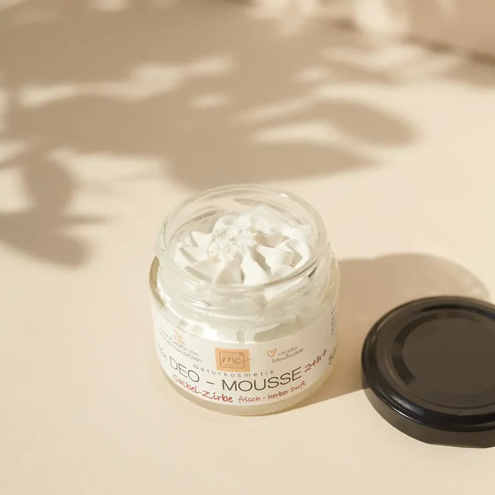 Das Deo‑Mousse Salbei Zirbe verbindet die klärende Kraft von Salbei mit der klaren, holzigen Frische der Zirbe. Die cremig‑luftige Mousse‑Textur lässt sich angenehm verteilen, zieht schnell ein und pflegt die empfindliche Achselhaut mit hochwertigen Pflanzenölen. Die natürliche Wirkformel schützt zuverlässig vor unangenehmen Gerüchen – ganz ohne Aluminium, Alkohol oder synthetische Duftstoffe. Ideal für alle, die einen herben, naturverbundenen Duft lieben.