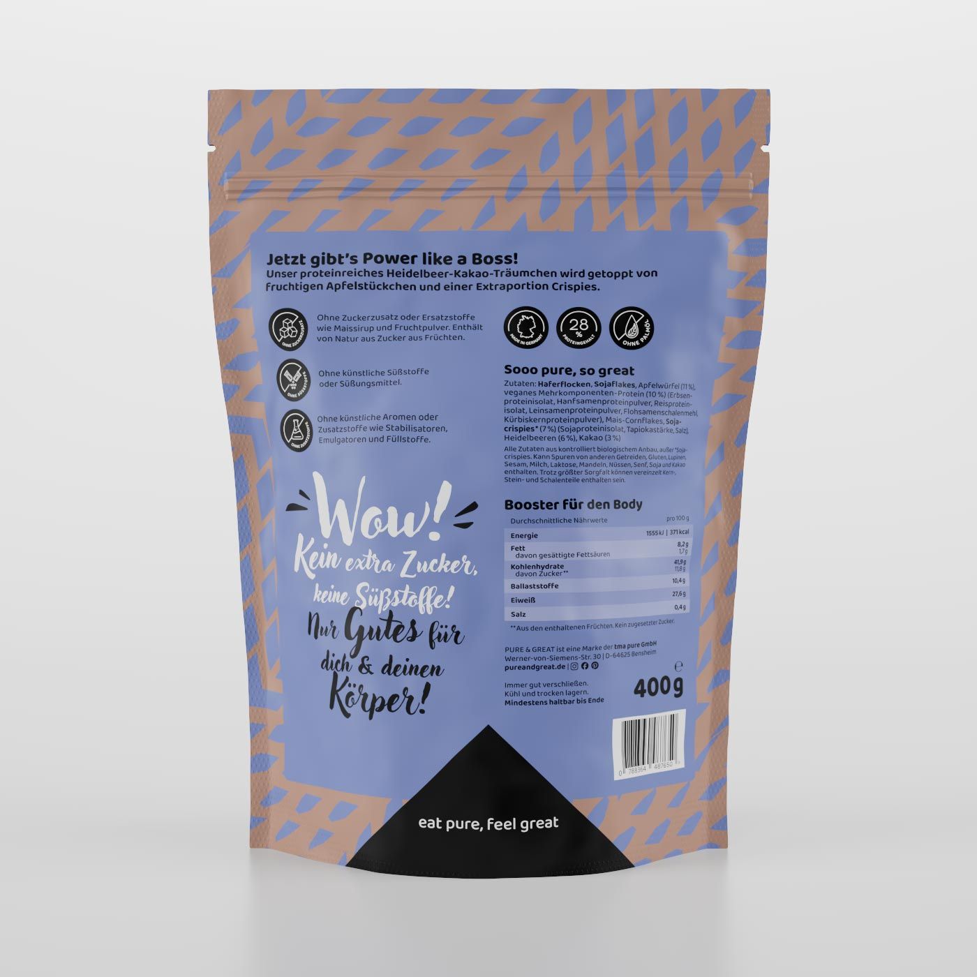 Protein like a Boss! Das PURE & GREAT Kakao Crispy Protein Müsli liefert dir satte
