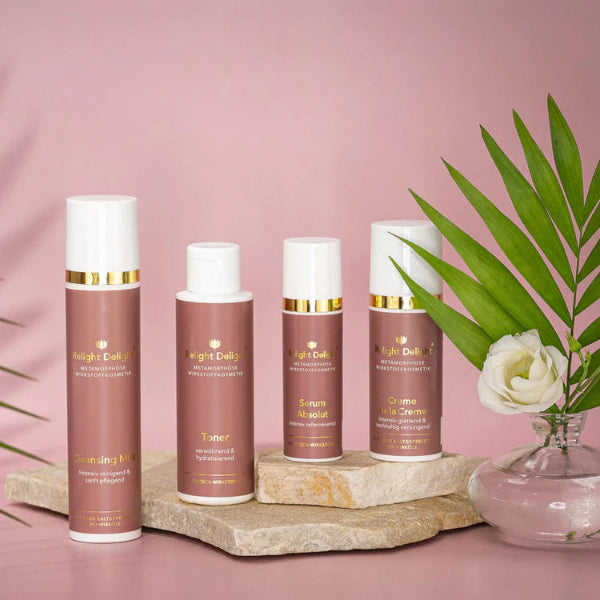 Enthält: Reinigungsmilch 100 ml, Gesichtswasser 100 ml, Pflegeserum Absolut 30 ml, Creme de la Creme 50 ml